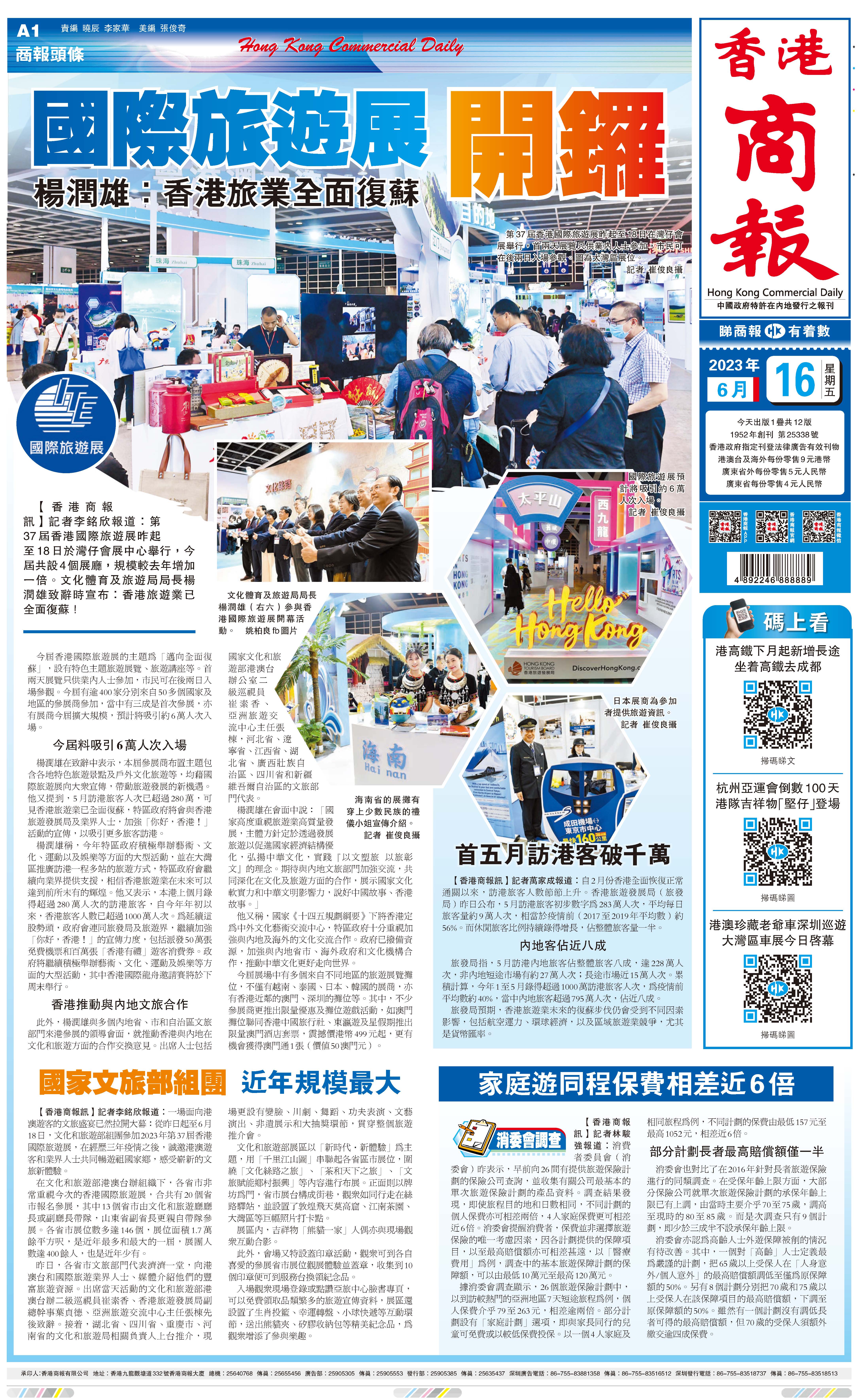 記者李銘欣報道:一場面向港澳遊客的文旅盛宴已然拉開大幕:從昨日起至6月18日,文化和旅遊部組團參加2023年第37屆香港國際旅遊展,在經歷三年疫情之後,誠邀港澳遊客和業界人士共同暢遊祖國家鄉,感受嶄新的文旅新體驗。