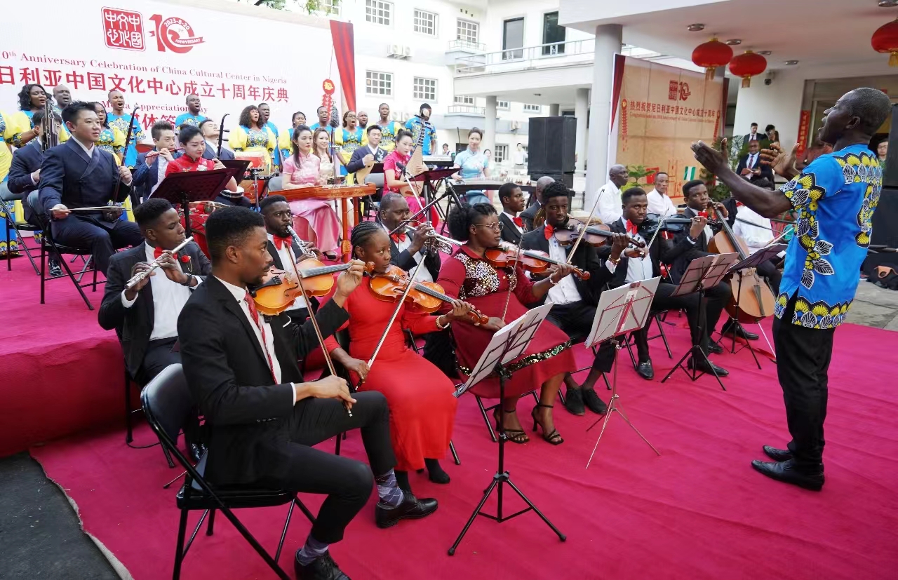 慶典上,中央民族樂團與尼日利亞奧布里茲樂團及其他文藝團體聯袂為觀眾獻上了精彩演出,通過藝術形式共享中國和文化、同奏尼中合樂章。中國傳統樂器古箏、笛子、二胡等與尼日利亞的現代管弦樂器以及尼傳統樂器同台合奏中尼兩國名曲,讓演出充滿了和諧協作、團結向上的溫馨熱烈氣氛。悅耳動聽的中華國樂和尼日利亞多彩藝術,演繹兩國美好願景,將慶典活動推向了高潮。