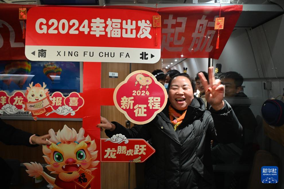 1月1日,從蘭州開往鄭州的G2024列車上,乘客在慶祝新年。