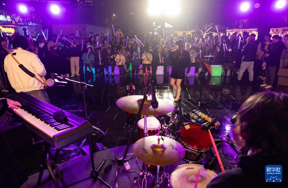 1月1日,遊客在成都寬窄巷欣賞街頭音樂會。