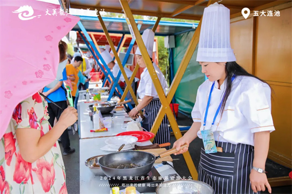 「吃出來的健康」保健美食品鑑大賽暨龍江康養烹飪大師賽火熱開賽,來自省內老字號美食店、著名餐飲企業的13名廚師將健康餐飲理念、當地礦泉食材與煥新的無限創意碰撞、融合,為遊客和嘉賓呈現了一場視覺與味覺的雙重饗宴。參賽廚師在規定時間內,分別製作一道兼具創意與風味的礦泉豆腐和一道養生招牌菜。專家評審從色、香、味、意、康五個維度綜合打分,總分前三名的選手最終獲得「龍江健康飲食金牌菜」獎項。