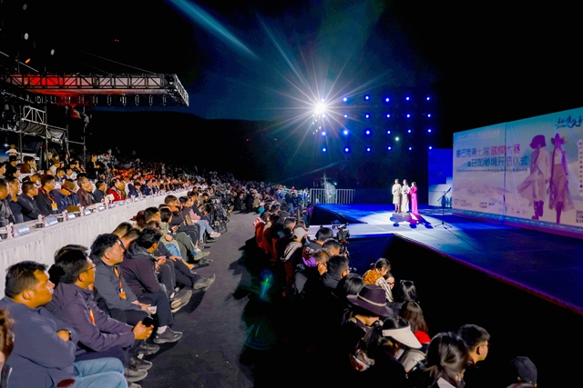來自全國五大藏族地區的60位優秀藏模,身著融合傳統與現代的民族盛裝,以天地為幕、以山河為景,用腳步丈量文化的深度,用服飾講述九色香巴拉的溫度,為“民族團結”“文旅融合”寫下生動註腳。甘南州政協主席仁青東珠,甘肅省文化和旅遊廳副廳長龔佳佳,甘肅省民族事務委員會副主任張樹傑,甘南州委副書記、夏河縣委書記楊振林等省直和甘南州、夏河縣相關部門負責人,來自全國遊客的藝術設計和表演團隊、中國高校代表。