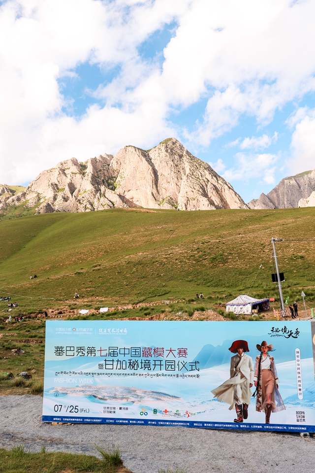 這場蕃巴秀以「祕境天秀」為主題,將舞台從草原轉向甘加祕境——這片承載著20萬年人類印記的土地,為活動注入了「天人合一」的自然底色。活動現場,模特兒們的服飾設計靈感直接取材自甘加祕境的山水草木-藏藍取自草原的夜空,金棕源自八角古城的夯土,銀白呼應白石崖的冰雪;而走秀路線更串聯起草原、溶洞、古寺,讓服飾的每一寸賜樣都與腳萐緣;而走秀路線更串聯起草原、溶洞、古寺,讓服飾的每一寸賜樣都與腳部情緣的觀念,詮釋天曲」。