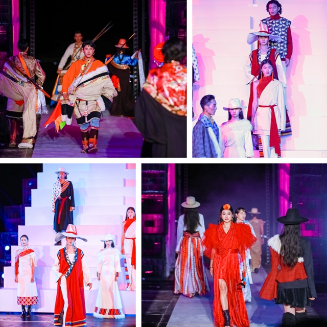 當晚的展示活動由「天境秘語」「天牧共生」「天唱傳奇」「天舞星繡」「天域甘加」五部分組成,在亙古的璀璨星辰與現代絢麗燈光交織下,身著各色各式藏族裝飾的模特兒從青青草牧場走來,伴隨著這百年老衣裏的人。傳統與現代的碰撞,民族與世界的交融,服飾展示與音舞詩畫的綜合呈現,讓觀眾在如夢似幻的視聽盛宴中,感受到了生髮於藏地、滋養於中華民族共同體的文化藝術的優雅、自信與無盡魅力。