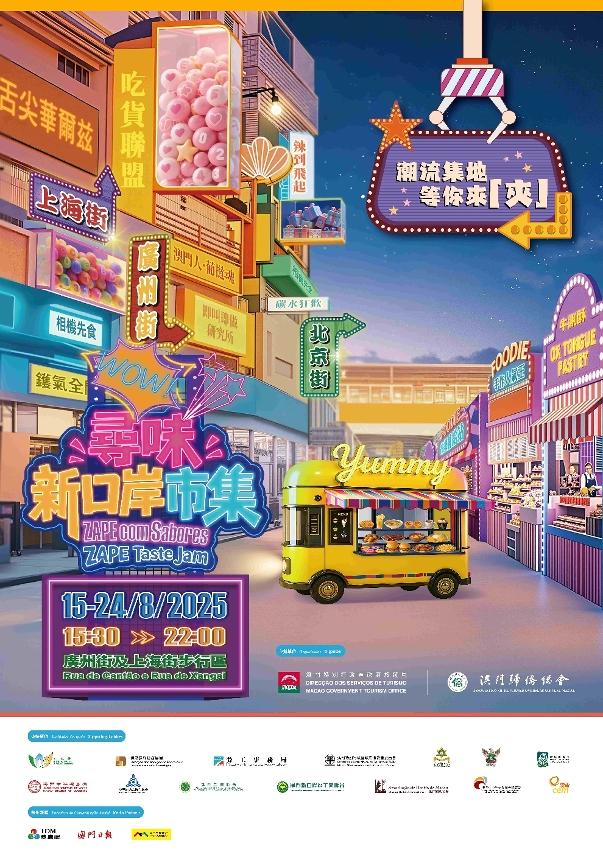 其中,由旅遊局籌備的“尋味新口岸市集”將於8月15至24日下午3時30分至晚上10時舉行,以“美食餐車,美饌食街”為主題,融合澳門東南亞風情及多元美食元素,展現澳門豐富的飲食文化與社區魅力。市集聯動本地商戶參與,將設置6台美食及特色餐車以及超過30個攤位,涵蓋新口岸區美食、東南亞美食、輕食及飲品、咖啡類、美酒類、文創及遊戲,並將安排本地表演者和團體於舞台上呈獻舞蹈及演唱等文藝表演,為旅客和居民提供多元化的“旅遊+美食+消費”體驗,促進區內人流及消費。