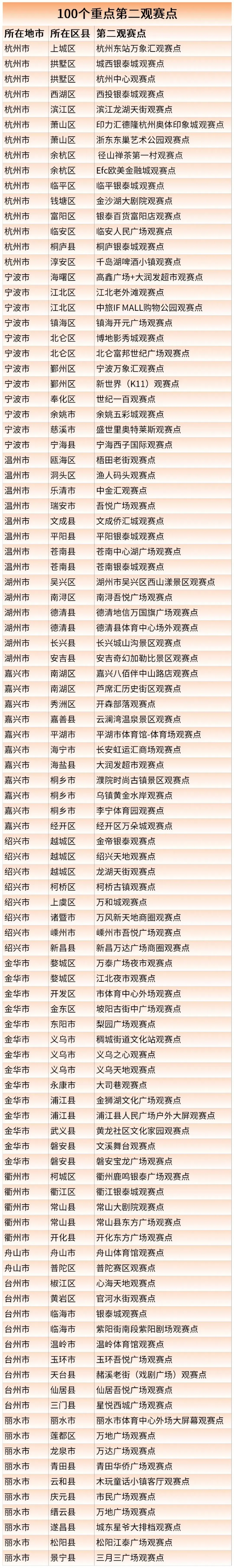 全省百個重點「浙BA」第二觀賽點,遍佈城市人氣美食體驗場所、景點、商業空間等,讓籃球熱浪席捲全省各地。
