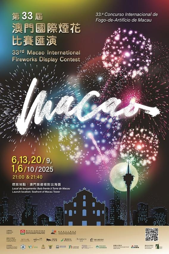 由旅遊局主辦的第33屆澳門國際煙花比賽匯演將於9月6日至10月6日舉行。來自全球10個國家的煙花公司將傾力呈獻絢麗煙花表演,展現澳門“旅遊+盛事”的吸引力,豐富“盛事之都”夜間活動,聯動“火樹銀花嘉年華”及線上遊戲,提升公眾參與度、帶動人流及促進社區經濟。
