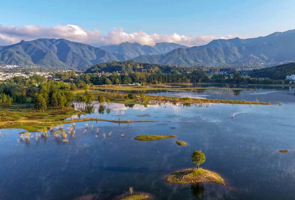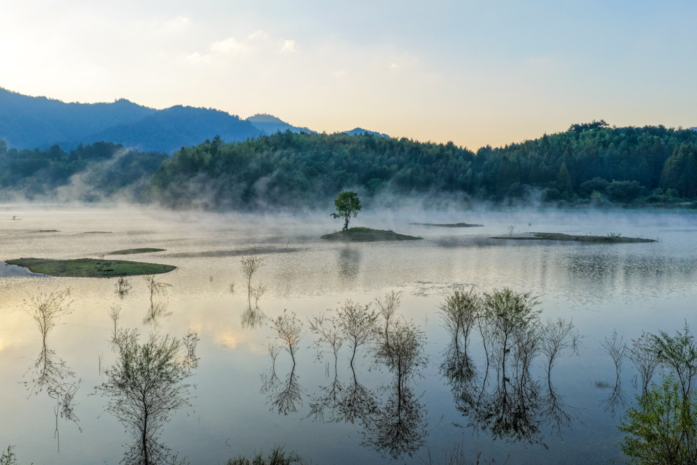 安徽黟縣:奇墅湖晨霧美如畫