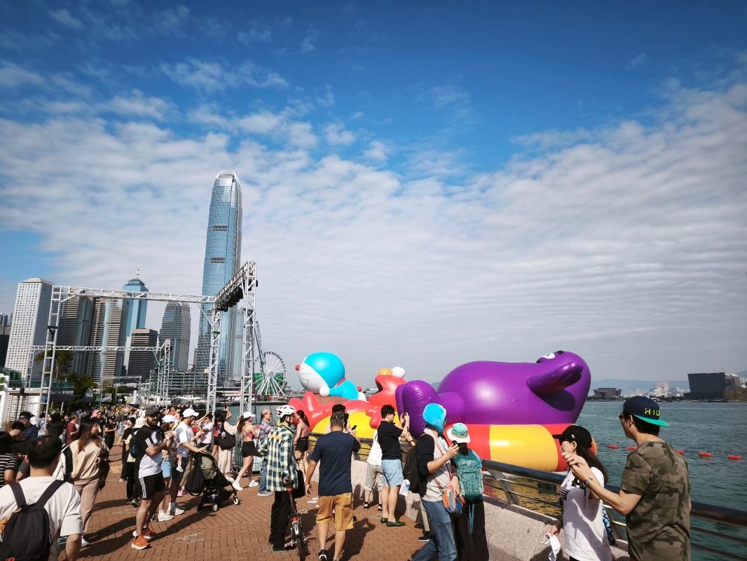 巨型海上充氣雕塑公仔成為市民與遊客爭相“打卡”之處