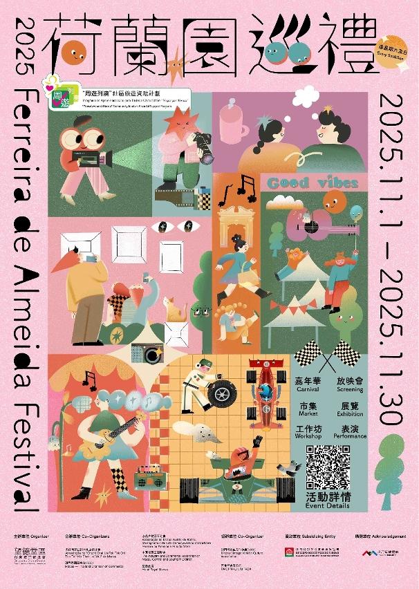 “2025荷蘭園巡禮的活動橫跨整個11月,在望德堂區舉行,為期一個月的活動集展覽、市集、工作坊、表演、嘉年華及放映會於一身,6項活動包括:瘋堂嘉年華、賽車與您遊澳門工作坊、情濃雀仔園系列、微電影放映會、經典車展:Corolla特展及澳門格蘭披治攝影展,邀請大家一同走進荷蘭園,感受城市的溫度與記憶。