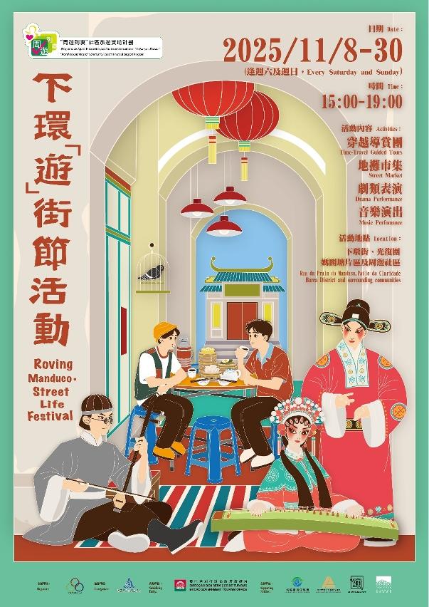 “下環街節活動”於11月8日至30日連續四周逢星期六日舉行,活動覆蓋下環街、光復圍、媽閣塘片區及周邊,亮點紛呈:地攤市集匯聚特色好物、劇場與音樂演出接著上演、穿越導賞團帶領參與者探尋歷史足跡,而巷仔飲茶體驗更可讓旅客及居民感受地道風情,以融合文化、娛樂與美食的周末盛宴,歡迎大家親身探索。