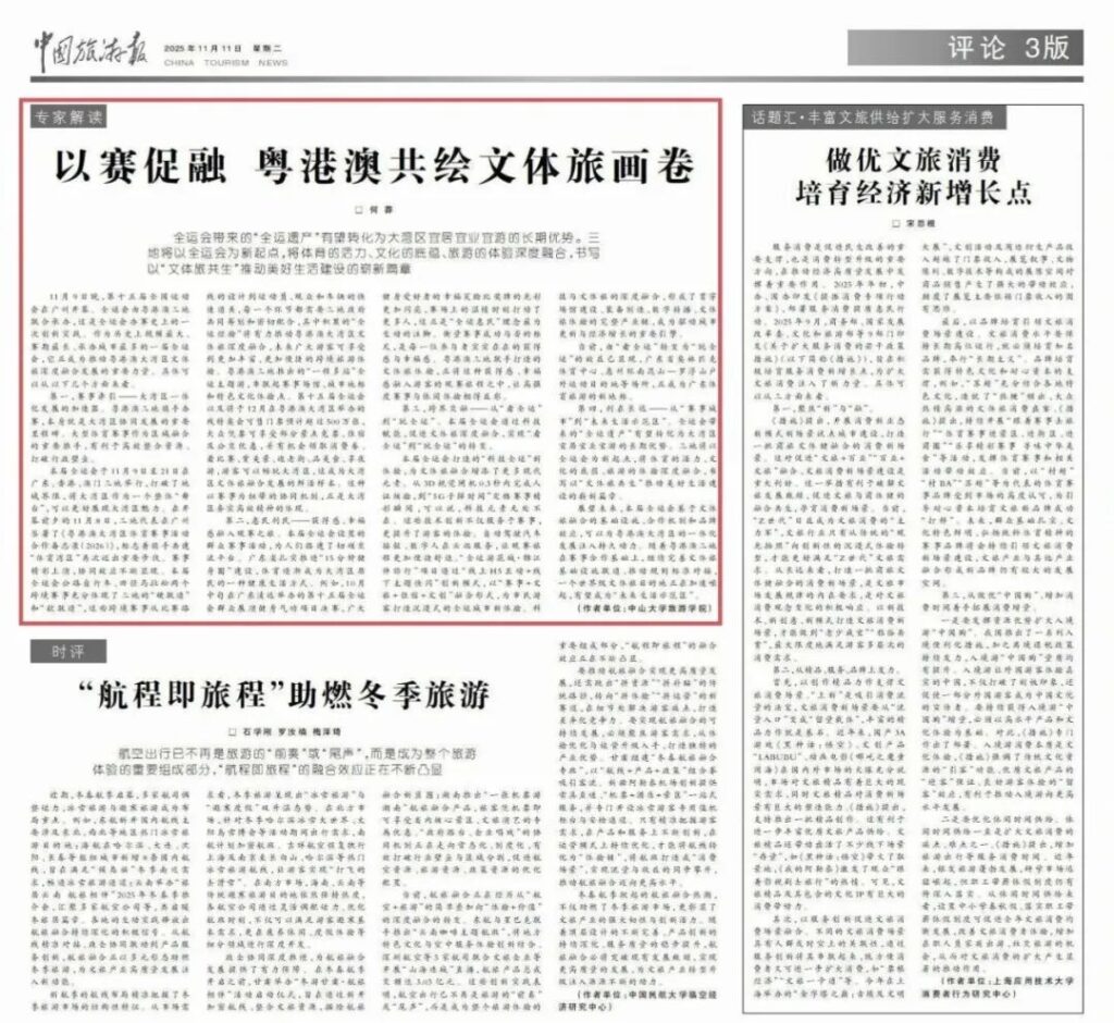 全運會帶來的“全運遺產”有望轉化爲大灣區宜居宜業宜遊的長期優勢。三地將以全運會爲新起點,將體育的活力、文化的底蘊、旅遊的體驗深度融合,書寫以“文體旅共生”推動美好生活建設的嶄新篇章