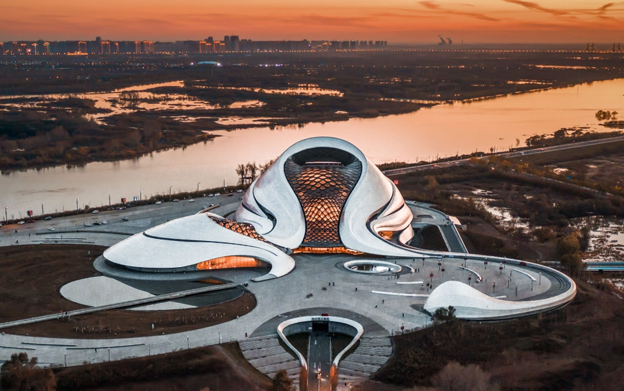 佇立松花江畔的哈爾濱大劇院,以其銀白色流線造型重塑城市天際線,成為這座音樂之城耀眼的動感符號。