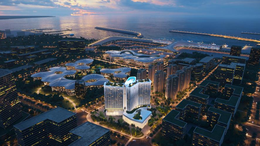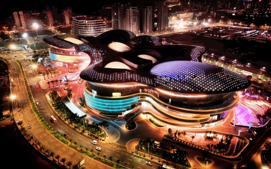 免稅城的建築設計極具現代感,以「海洋元素」為靈感的流線型外觀與海南的熱帶風情完美融合。
