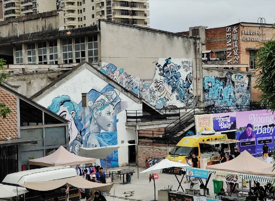 最引人駐足的莫過於巨型塗鴉牆,它已成為這座城市的新興視覺符號,吸引無數年輕人前來定格自己的青春影像。