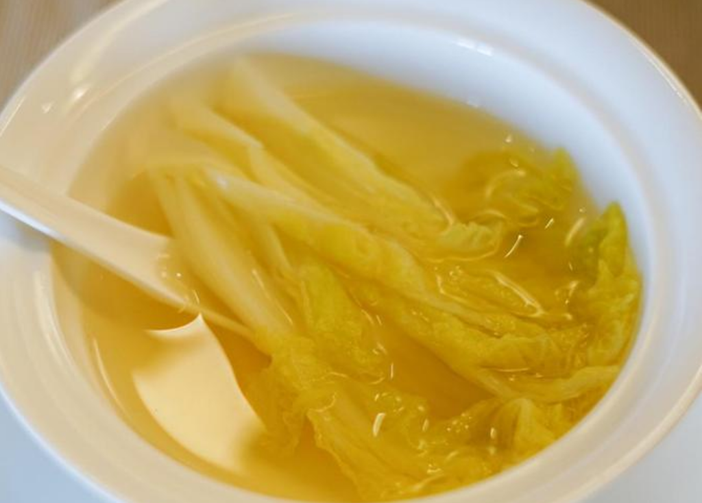 這道菜的名字極具迷惑性——「開水」並非普通滾水,而是精心炮製、極盡鮮醇的頂級清湯;「白菜」也非普通白菜,而是只取鮮嫩菜心。