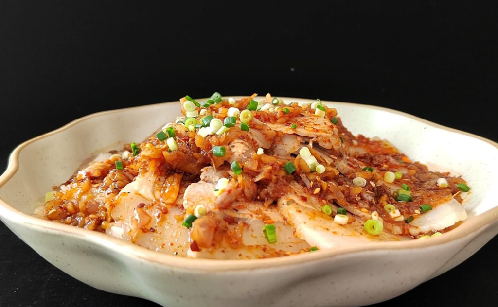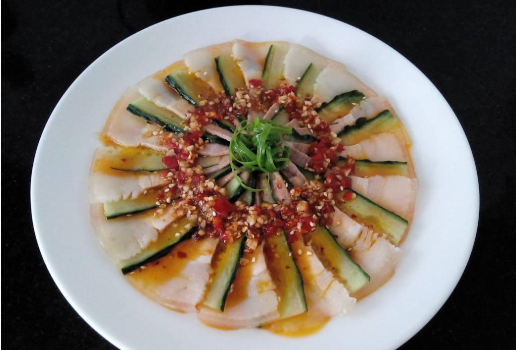 蒜泥白肉是一道源於四川的傳統涼菜,以其形制簡約、滋味濃烈而著稱。