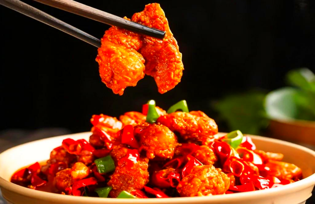 雞塊經醃漬後炸至外酥裡嫩、骨酥肉香,再與香料同炒。入口先是花椒的酥麻,繼而辣椒的乾香與鹹鮮味湧上,越嚼越香,回味持久。