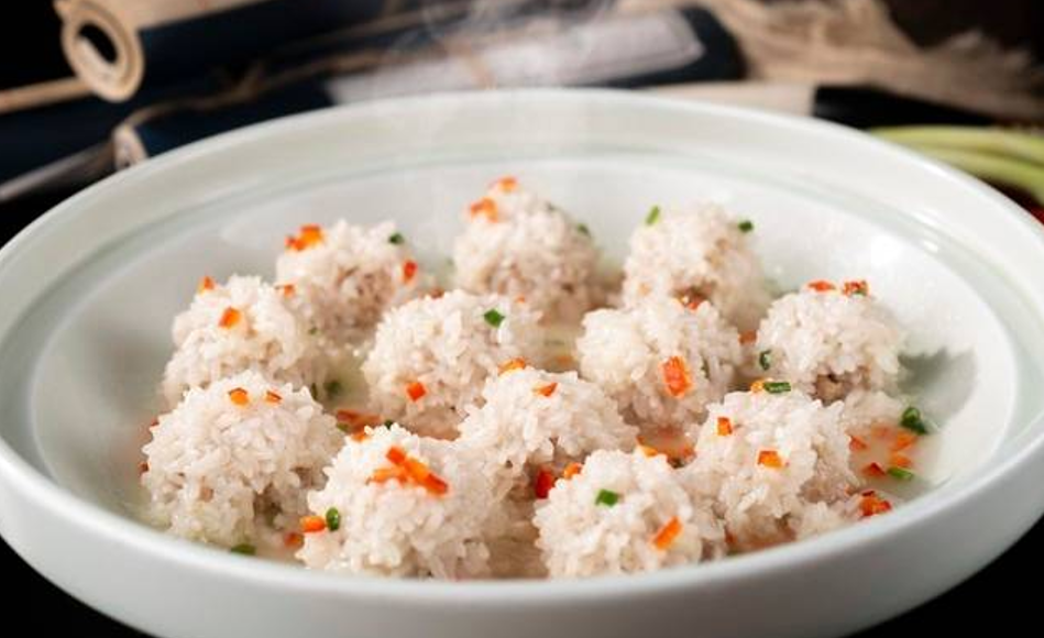 珍珠圓子肉餡講究鮮嫩多汁,常混入荸薺碎以增加爽脆口感。