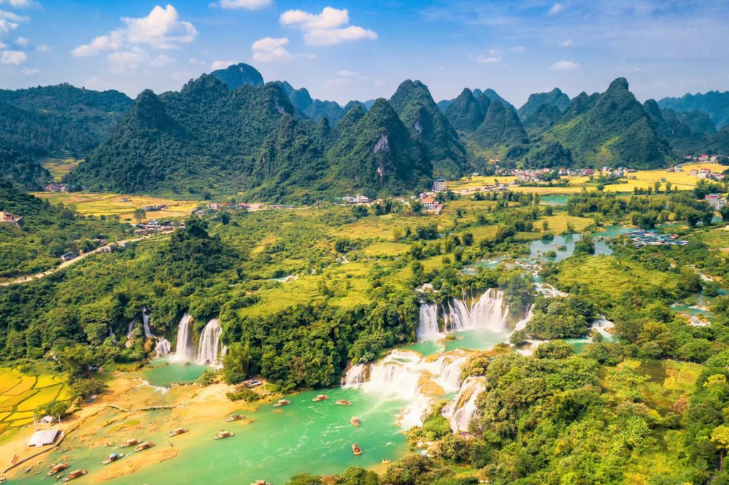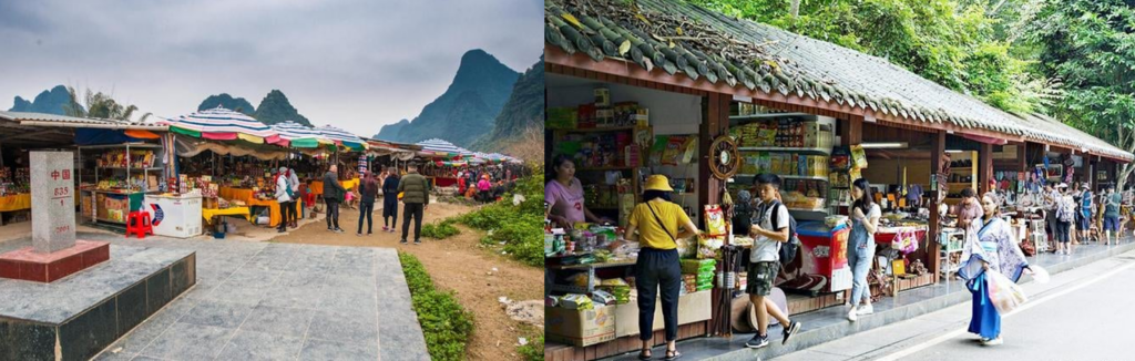 瀑布旁的中越邊境集市充滿異域風情,可選購越南咖啡、腰果等特產。周邊還有明仕田園等景點,形成「山水+風情」的獨特體驗。