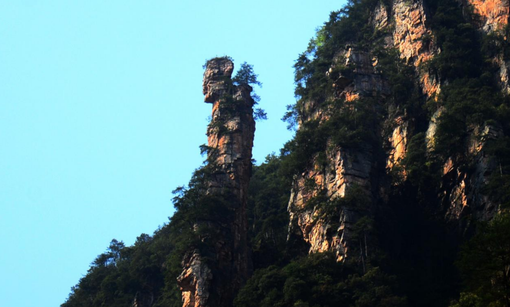 中段的「采藥老人」峰惟妙惟肖,褶皺的「衣袍」與佝僂的姿態盡顯滄桑,是十裡畫廊的標誌性景觀。