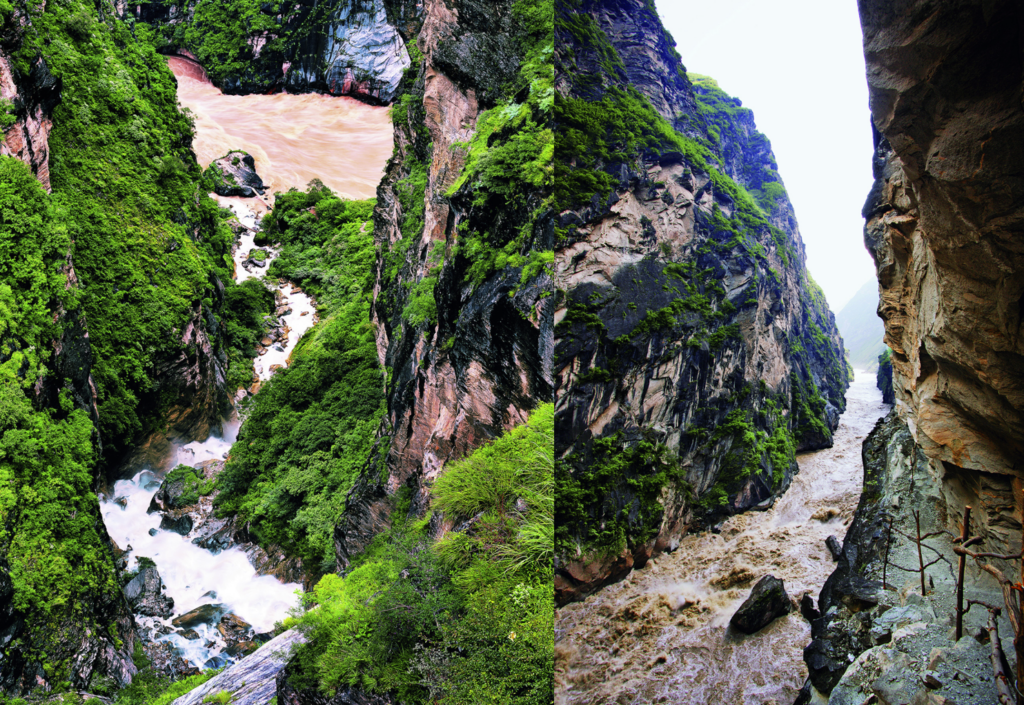 中虎跳的「一線天」與「天梯」同樣必去,狹窄谷道中陽光穿隙而過,沿懸崖棧道下行可近距離感受激流怒吼,驚險又震撼。