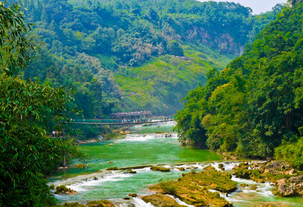 在中越邊境的崇山峻嶺間,德天瀑布與越南板約瀑布隔河相望。山水相依間,盡展亞熱帶雨林的靈秀與磅礴,是每一位山水愛好者不可錯過的旅行勝地。