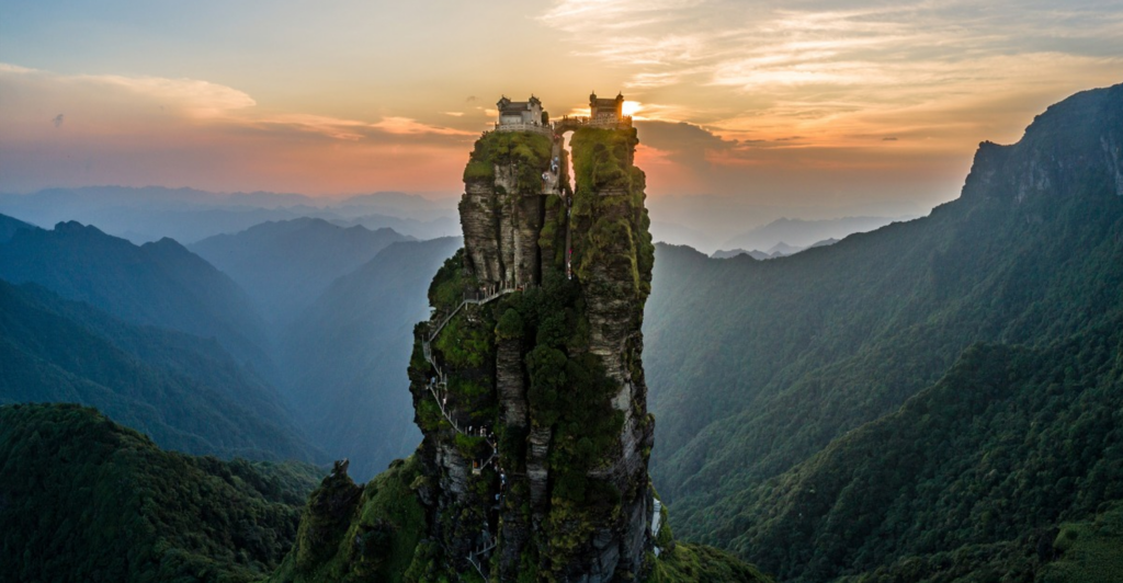 登頂後可在觀景台靜候日出,看陽光穿透雲海灑向山巒;也能探訪承恩寺,感受千年佛教文化的靜謐。