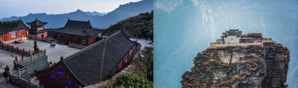 必打卡景點首推紅雲金頂,垂直高差近百米的孤峰拔地而起,中間一分為二,由天橋相連,登頂可俯瞰雲海翻湧,運氣好還能邂逅「佛光」奇觀。