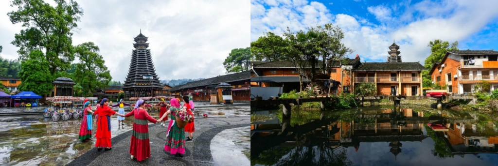 山下的寨沙侗寨還能體驗侗族歌舞、品嘗酸湯魚等特色美食,夜晚住吊腳樓,沉浸式感受民俗風情。