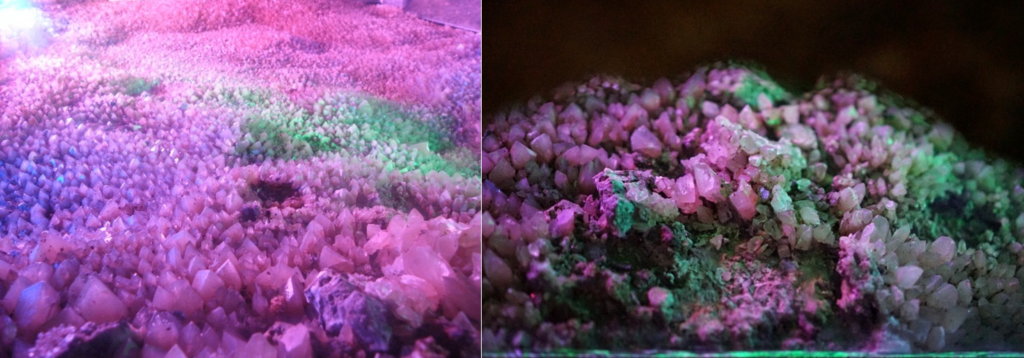「石花王國」溶洞核心區的洞內遍佈晶瑩剔透的石花,涵蓋捲曲石、文石花、方解石晶花等多種罕見類型,在燈光映照下更顯奇幻。