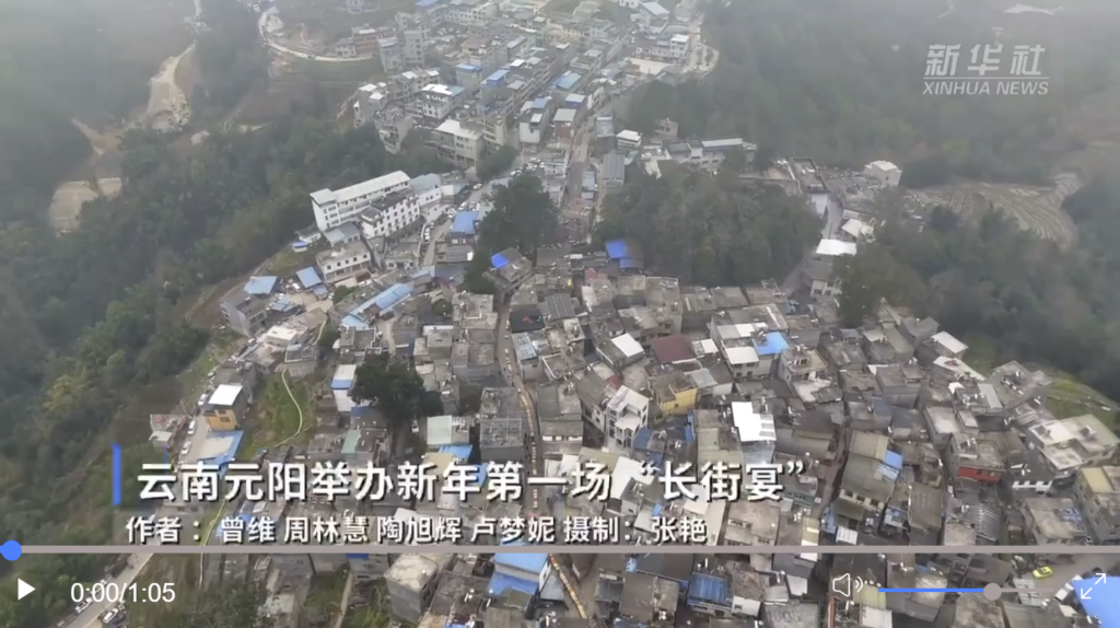 新年伊始,位於雲南省紅河哈尼族彝族自治州元陽縣俄扎鄉的哈播村,當地哈尼族群眾迎來了一年一度的「昂瑪突」節。村民將梯田魚、竹蟲、乾巴等特色美食擺上餐桌,數百桌美食桌連桌,凳連凳,沿街一字排開,宛如長龍在村里蜿蜒。村民們載歌載舞,與慕名而來的遊客共同慶祝節日,祈禱來年風調雨順、五穀豐登,描繪出一幅民族團結、幸福共享的動人畫卷。