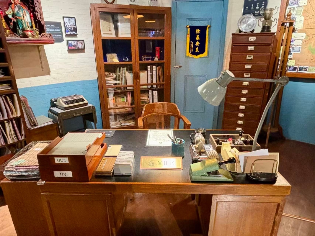 圖為展覽的重置電影場景和展出的珍藏道具及真本。(香港中通社記者 黃璇攝)