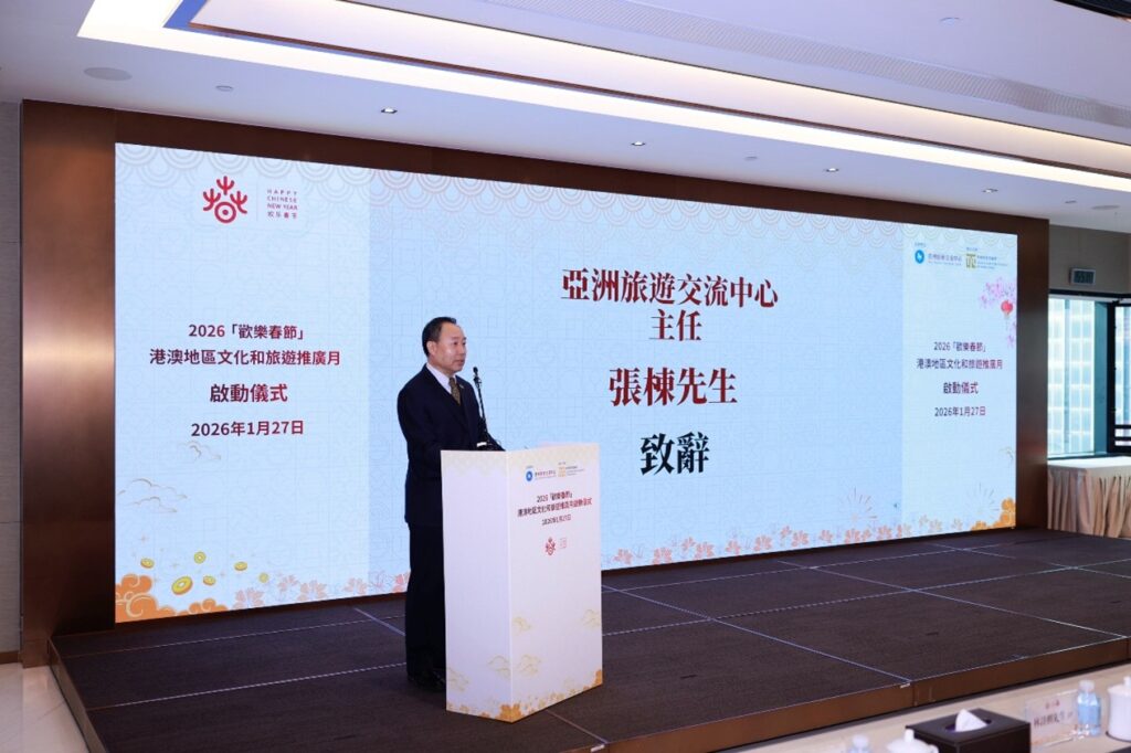 值2026年馬年春節臨近之際,2026“歡樂春節”港澳地區文化和旅遊推廣月啟動儀式隆重舉行。啟動儀式亮點紛呈,現場首發文化和旅遊部面向全球推出的2026年“歡樂春節”吉祥物“吉祥馬”。亞洲旅遊交流中心(亞旅中心)同步發佈第一批“一程多站”入境旅遊精品線路,航空公司推介特色旅遊產品。亞旅中心宣佈將繼續組織特色花車,參與香港、澳門兩地新春花車巡遊,為節日氛圍增色添彩。