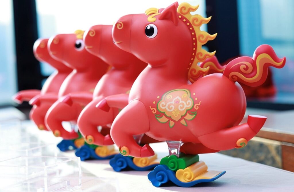 啟動儀式現場,國家文化和旅遊部面向全球推出的2026年“歡樂春節”吉祥物“吉祥馬”驚豔亮相。“吉祥馬”以東漢銅奔馬——馬踏飛燕為設計靈感,借鑒唐代五花馬的鬃毛裝飾手法,主色採用中國紅,輔以祥雲紋、如意紋等經典傳統紋樣, 12匹“吉祥馬”一字排開,盡顯新春喜慶祥和之氣。
