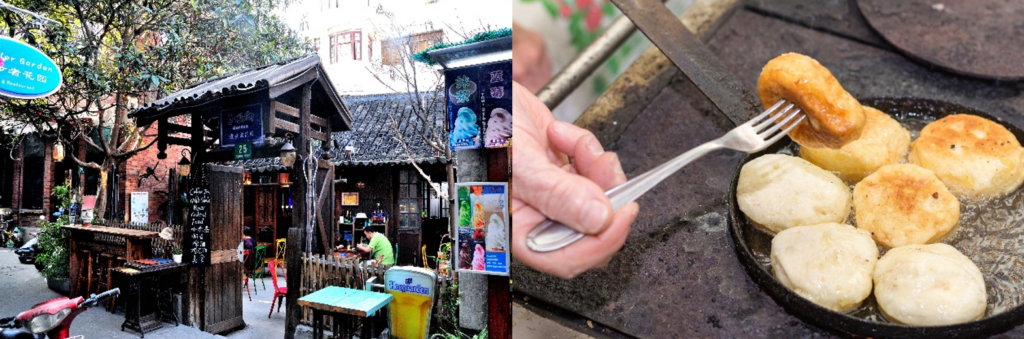 白天,古街古韻悠長,老店鋪香氣四溢。