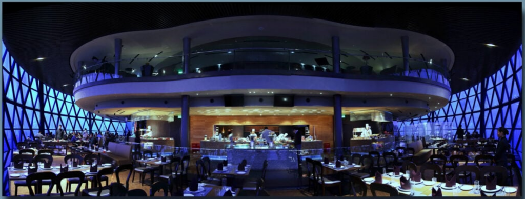 267 米的空中旋轉餐廳,每小時自轉一周的設計讓用餐成為一場流動的風景盛宴。一邊品嘗美食,一邊欣賞窗外夜景緩緩變換,味蕾與視覺的雙重享受,是旅途中難忘的奢侈體驗。