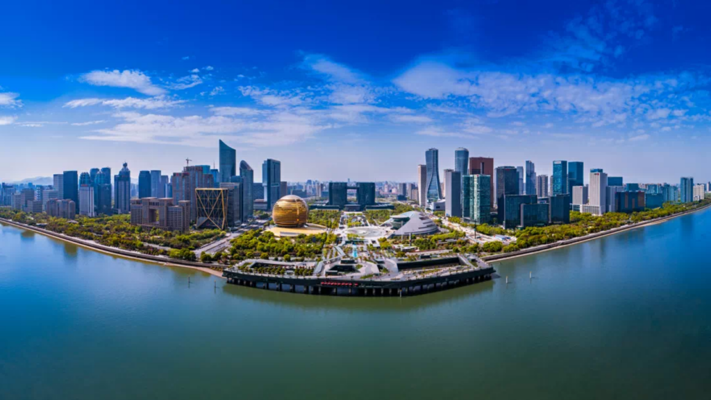 這裡現代建築集群與江景生態完美融合,免費開放的核心景觀區,是遊客感受杭州摩登魅力的必打卡地。
