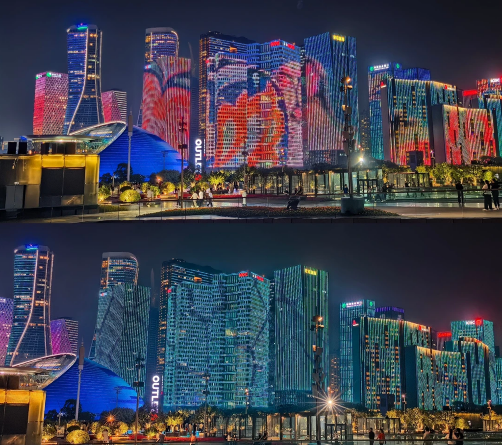 東岸活力滿滿,慶典廣場常辦文旅活動,《如夢晉陽》水上實景演出震撼人心,巨型噴泉矩陣搭配燈光、鐳射與威亞,重現古晉陽的盛世壯景。