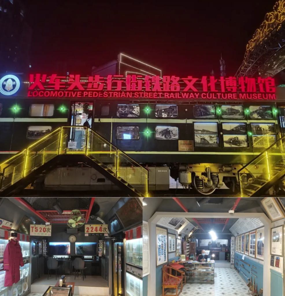 緊鄰機車的一節退役綠皮火車,被改造為免費開放的鐵路歷史展覽館,館內陳列著舊車票、信號燈等各類鐵路老物件,直觀展現了鐵路發展的歷史脈絡。
