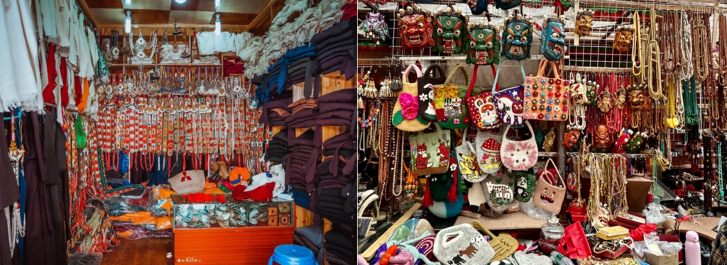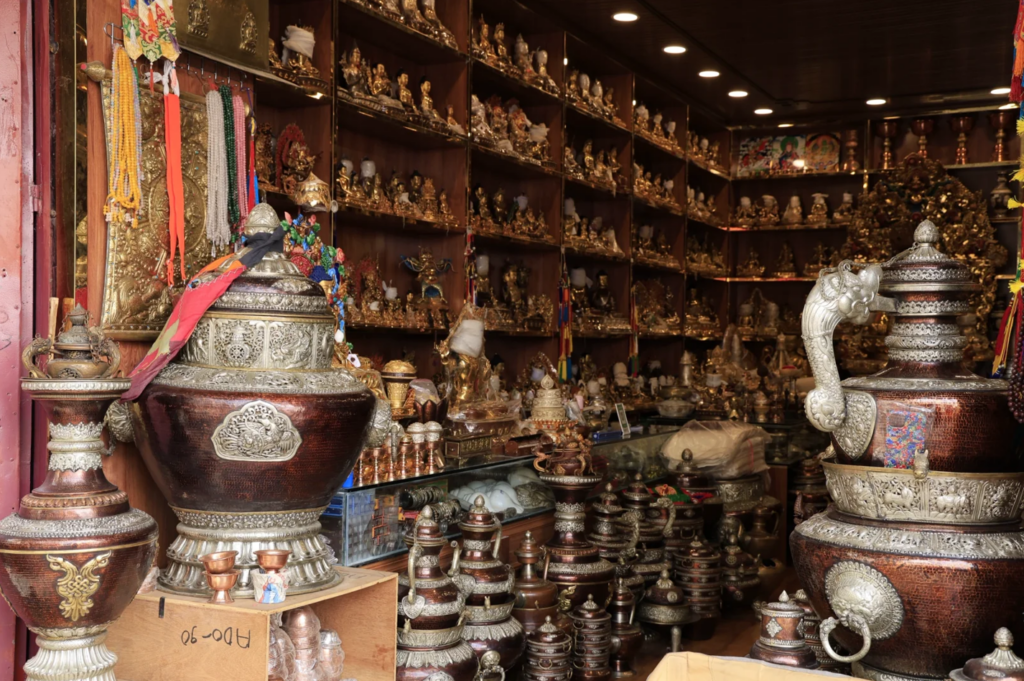 琳琅滿目的商鋪更是逛街樂趣所在。唐卡、藏刀、犛牛角飾品、尼泊爾手工藝品一應俱全。