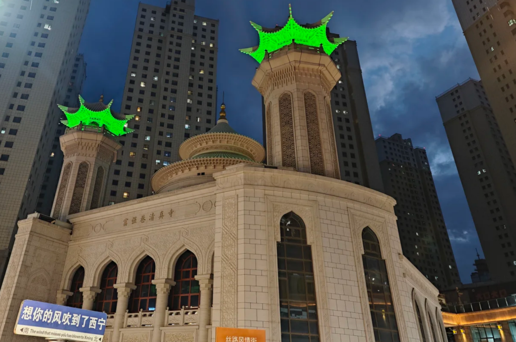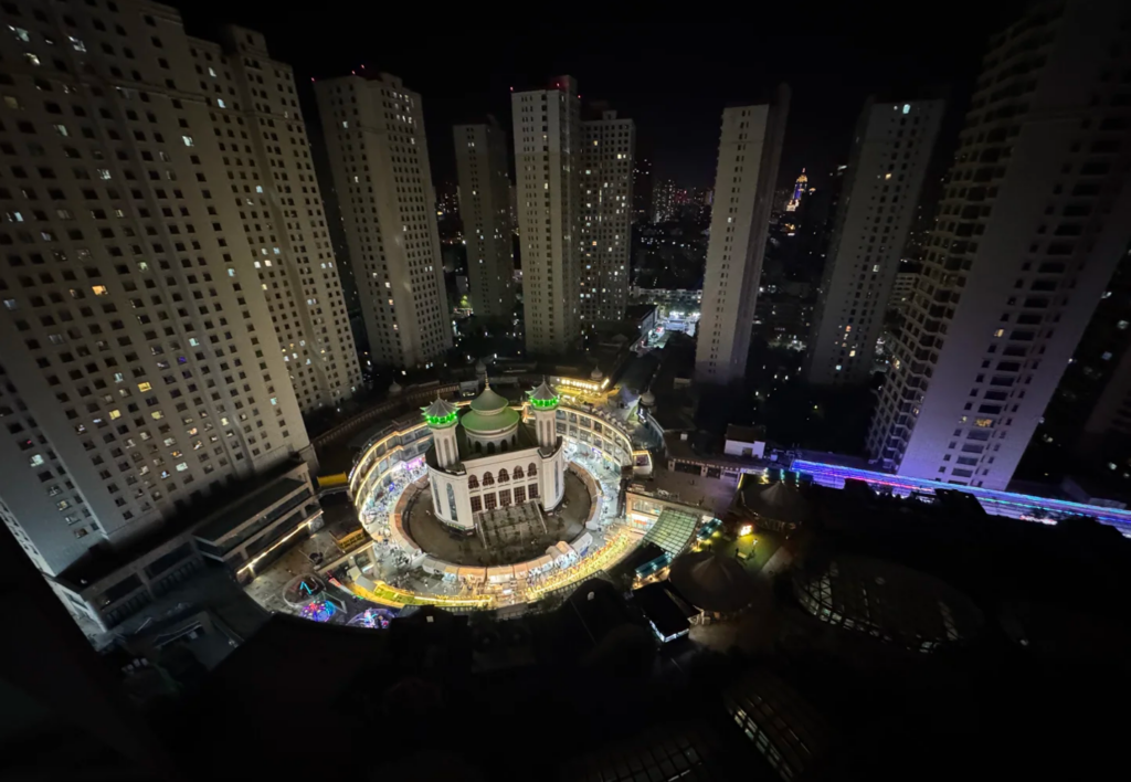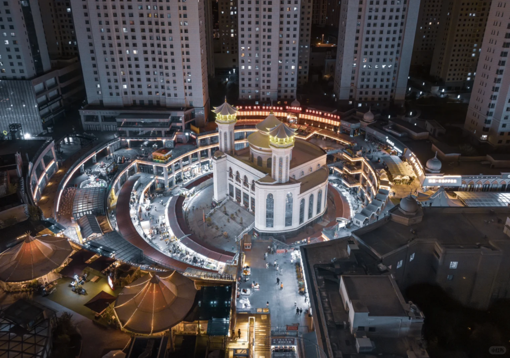 夜市的燈光更是一大亮點,室內外霓虹閃爍,三樓露臺能將清真寺穹頂與夜市煙火同框,是拍照打卡的絕佳位置。