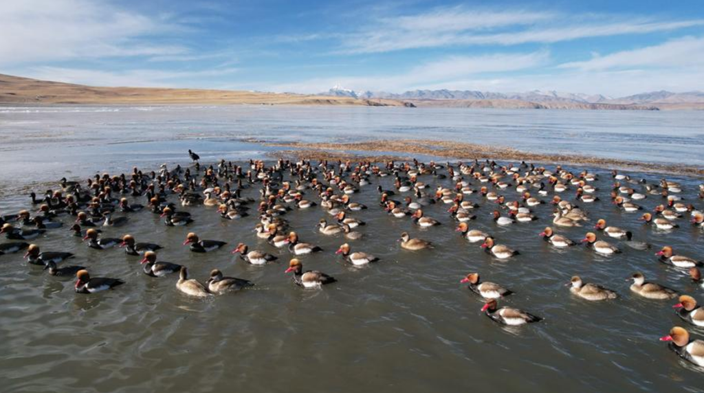 湖畔濕地棲息著黑頸鶴、斑頭雁等大量水禽,也是藏羚羊、野犛牛等珍稀野生動物的重要遷徙走廊。