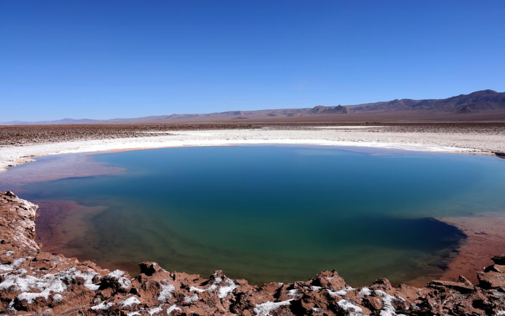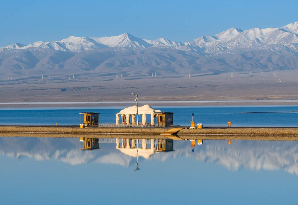 核心打卡點之一的2號鹽池,湖水澄澈透亮,呈純淨的蒂芙尼藍色,湖畔鹽灘潔白細膩,漫步於鹽橋之上,可將湖面倒影與遠處雪山同框,是景區最具代表性的景觀之一。