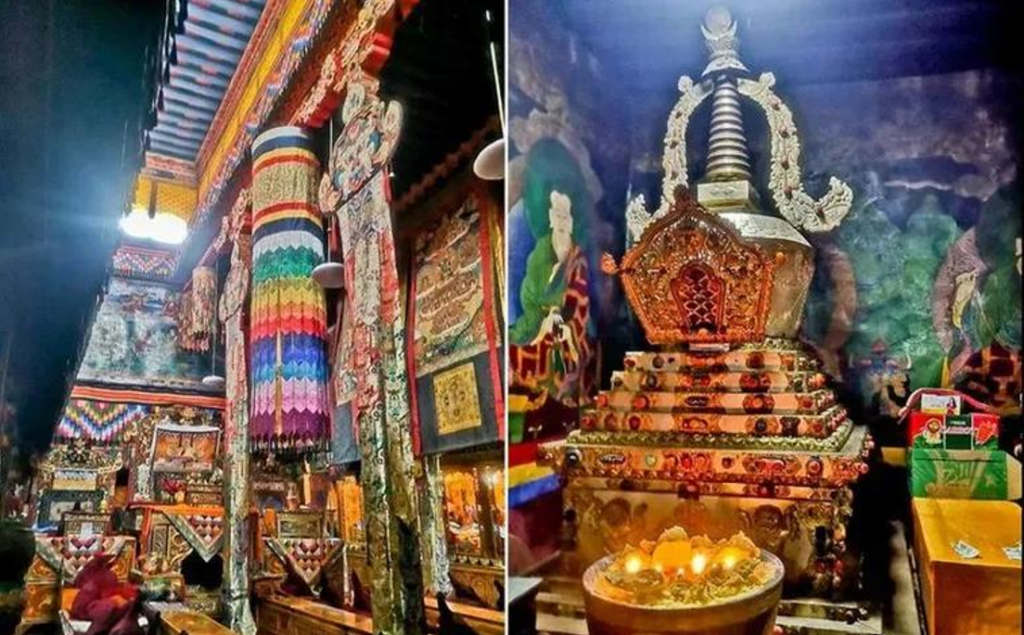 而遍佈各殿堂回廊的壁畫,皆以礦物與寶石粉末為顏料,歷經百年風雨依舊色澤鮮亮,每一幅都在靜靜講述著藏傳佛教的經典故事。