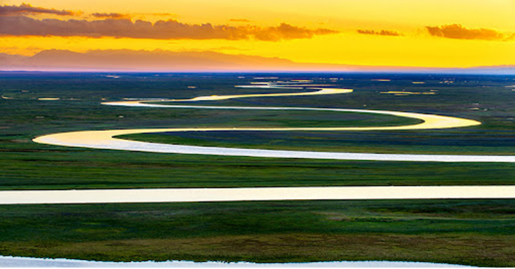 日落時分,夕陽灑在河面,河灣會倒映出多個太陽,形成震撼人心的 「九陽連珠」 奇觀,是攝影愛好者必打卡的夢幻場景。