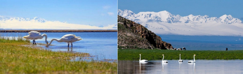 草原深處的天鵝湖,是亞洲最大的野生天鵝繁殖地。每年 4 至 10 月,成千上萬只大天鵝、疣鼻天鵝在此棲息嬉戲。