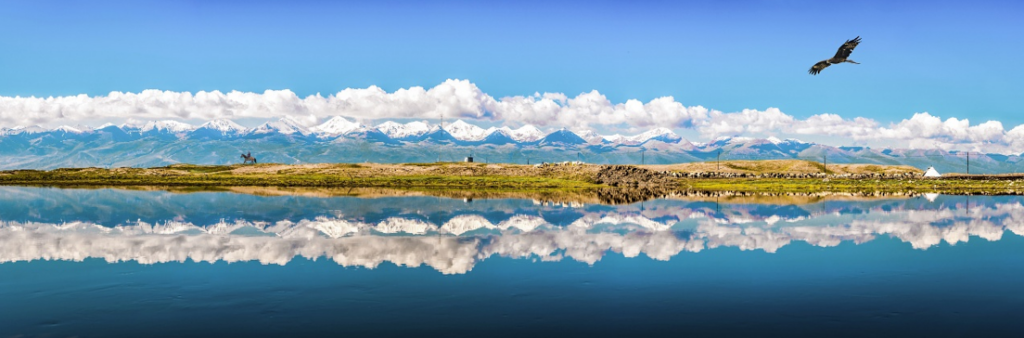 古稱淨海,蒙古語意為 「山脊樑上的湖」,湖面海拔 2073 米,面積約 458 平方公里,是新疆海拔最高、面積最大的高山冷水湖。