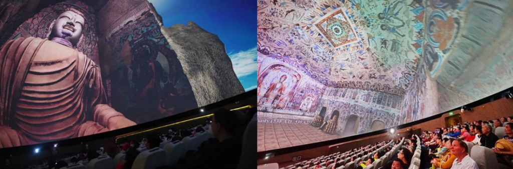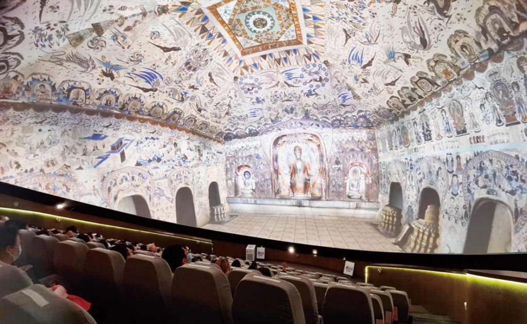 《千年莫高》快速梳理莫高窟的營建史,《夢幻佛宮》球幕電影則讓你 「飛入」 洞窟,近距離看清飛天的飄帶肌理與壁畫的礦物顏料色澤。