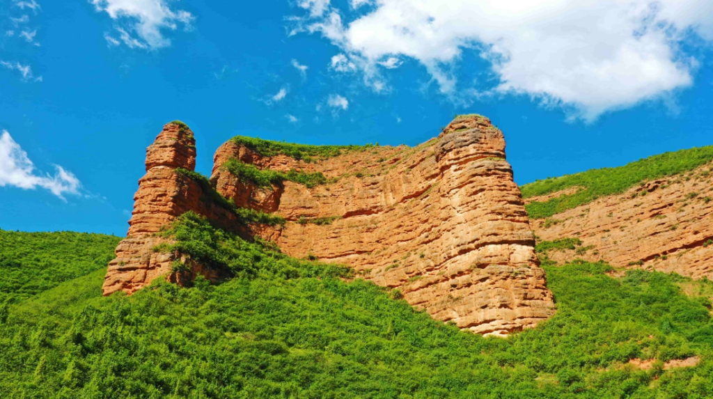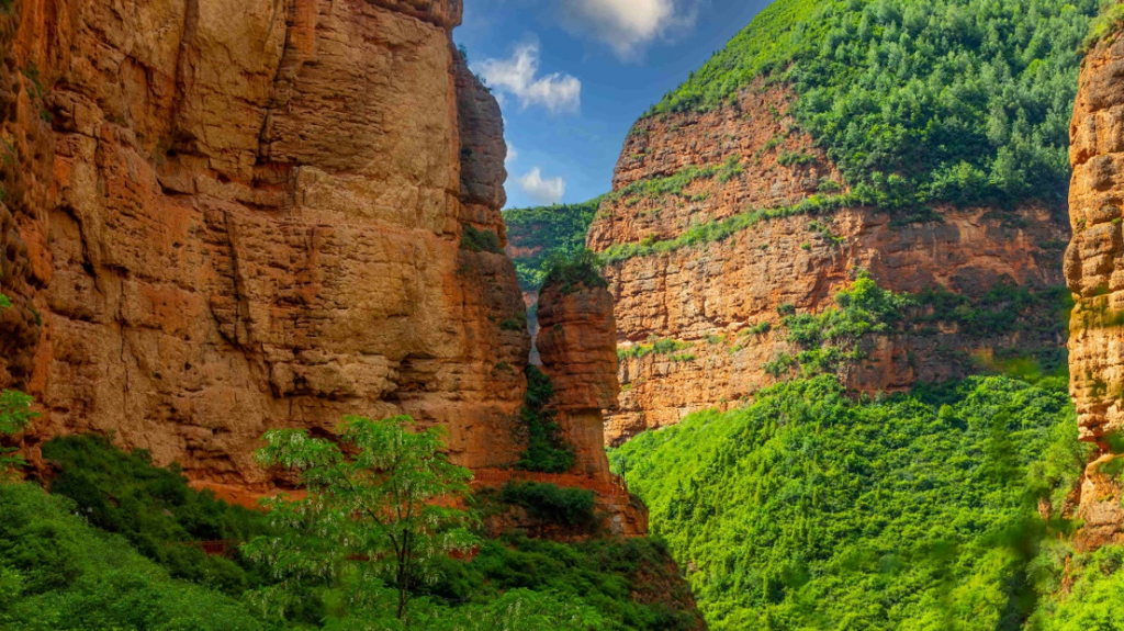 第二站赤壁幽谷,20 公里丹霞峽谷紅崖陡峭,72 眼泉水潺潺,「聖旨崖」「妖魔石」 形態奇特。